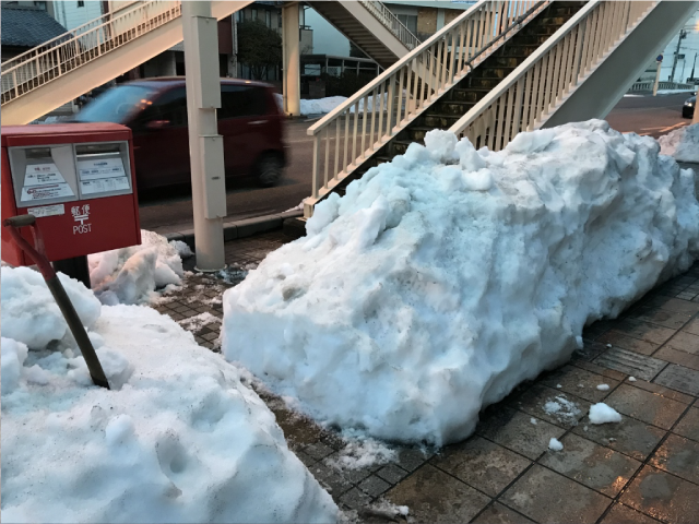 除雪車が通った後、出入り口や車庫前に雪がよせられていきますが、